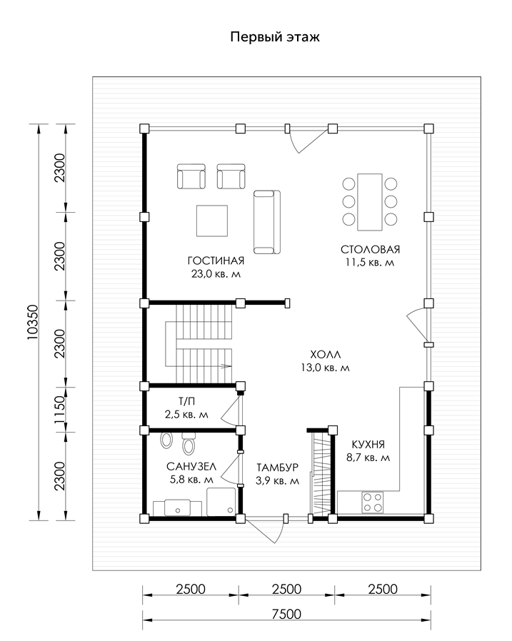 Простота форм – коробка в виде вытянутого прямоугольника, двускатная крыша, минималные свесы. Жесткий каркас из опорных клееных балок. Второй свет на всей протяженности или в одной из торцевых частей. Панорамное остекление, максимум свободного пространств.